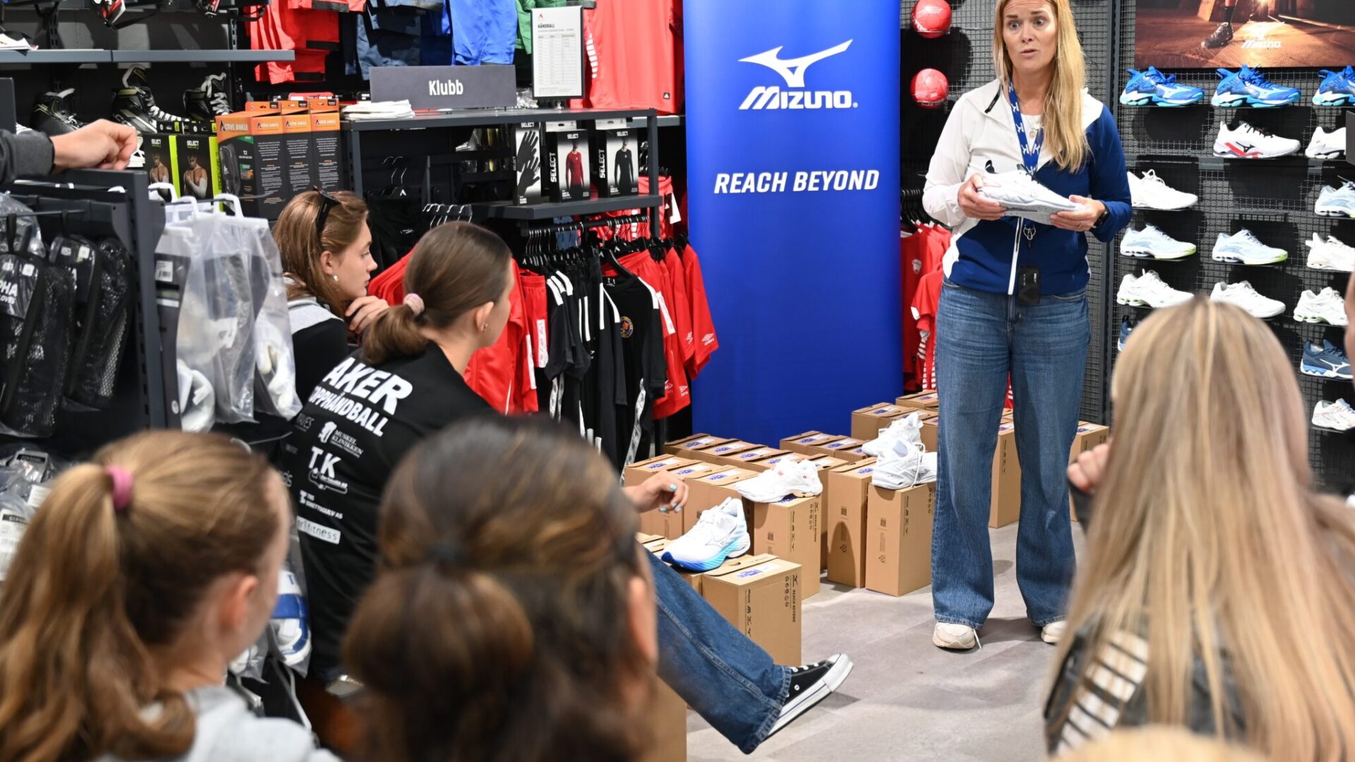 Onsdag var Akerjentene hos Anton Sport på Bekkestua der Mizuno presenterte sine nye skomodeller. Ikke bare fikk jentene mulighet til å prøve alle modellene for håndball – de fikk også mulighet til å snakke med designteamet til Mizuno. De ga feedback på hvordan skoen fungere for de forskjellige posisjonene og spillerne. Mizuno ønsket å vite så mye som mulig om erfaringene med skoene – både positivt og forbedringsforslag. Kvalitet og passform på sko er avgjørende for håndballspillere, og nå fikk jentene førstehåndsinformasjon om Mizunos modeller. Aker-jentene får både håndballsko og løpesko som en del av avtalen.